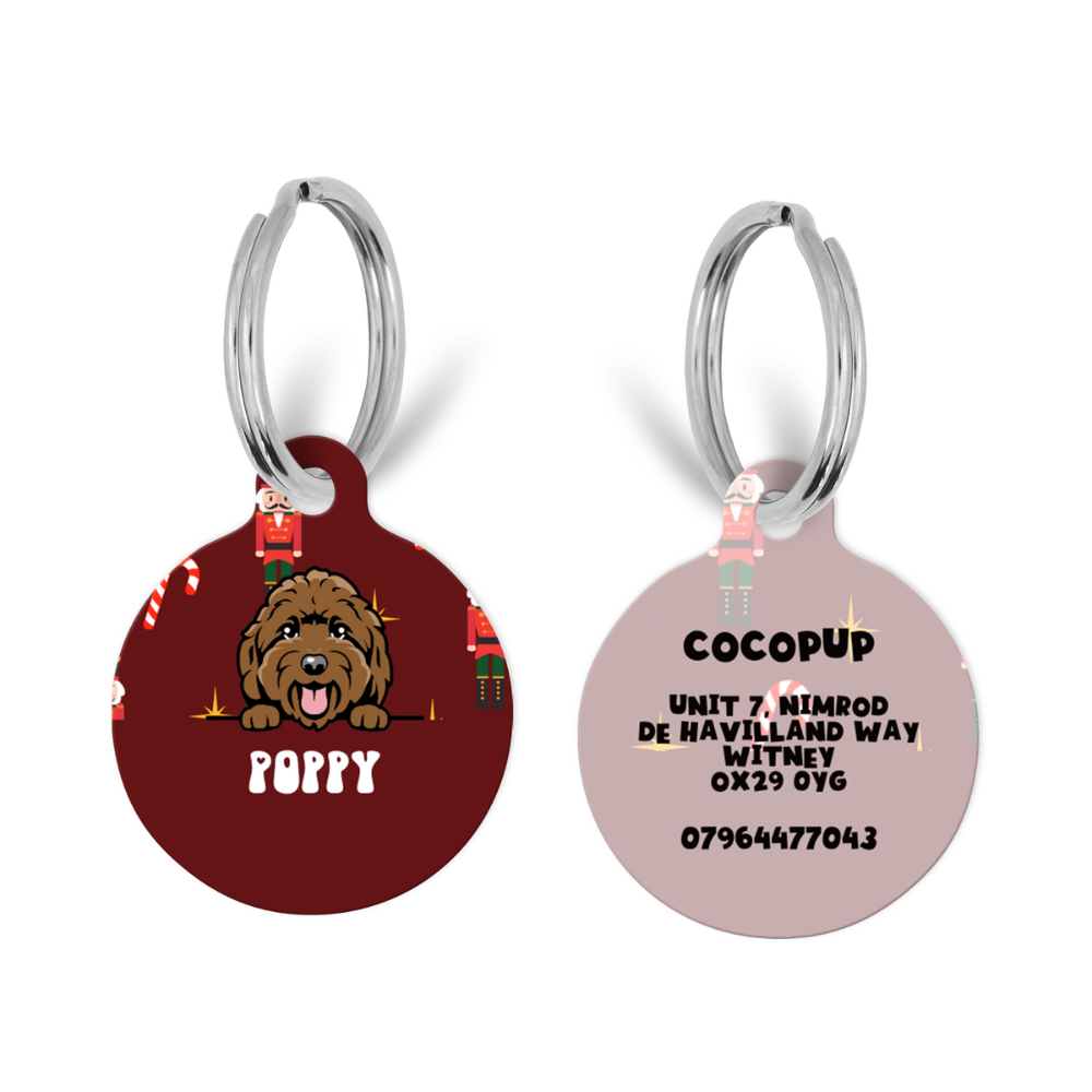 Personalised Dog Cartoon ID Tag - Holly Jolly Trails
