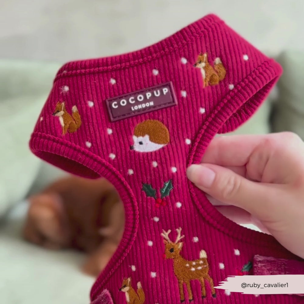 Keep your pup cosy and festive with the Holly Jolly Trails Adjustable Neck Harness. Made from soft burgundy cord and decorated with cute embroidered holiday friends, it’s perfect for joyful Christmas walks. The safety lock on the buckle ensures a secure fit, so your furry companion stays safe while spreading holiday cheer.