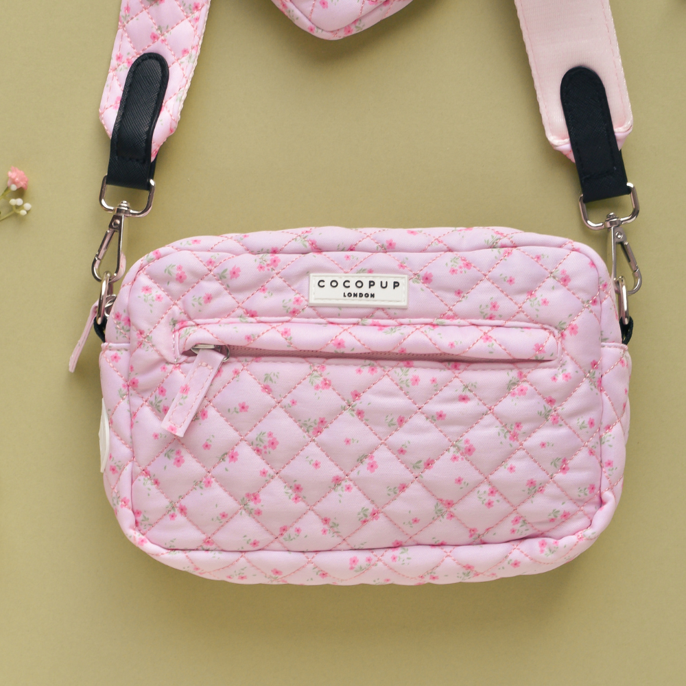 Dog Walking Bag - Quilted Ditsy Floral Pink
