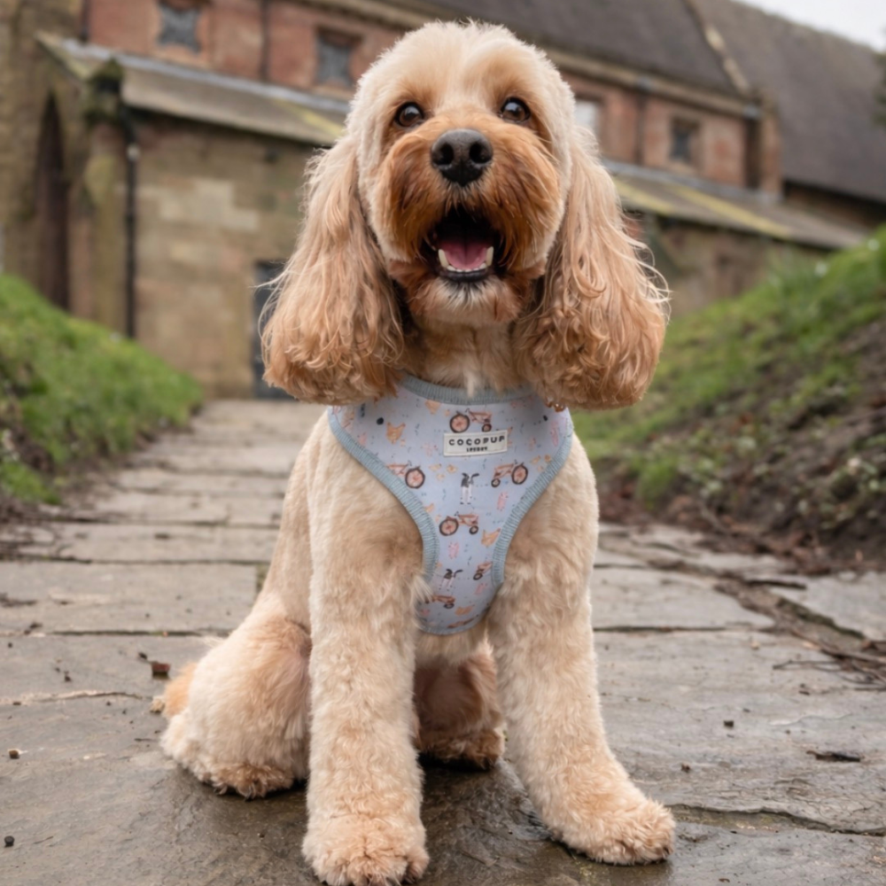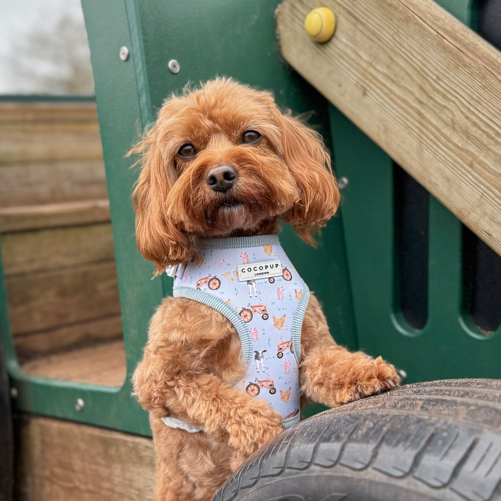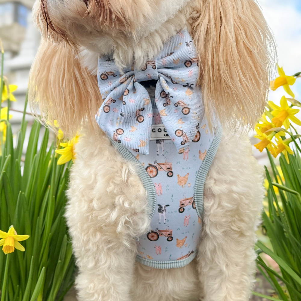 Give your pup a taste of farm life with the Barnyard Buddies Sailor Bow Tie. A delightful blue colour adorned with tractors, cows, pigs, ducks, and chickens, this bow tie celebrates everything countryside. Ideal for spring walks and outdoor adventures, it's the perfect accessory for any farm-loving furry friend. Let your companion show off their love for all things agricultural with this cheerful accessory.