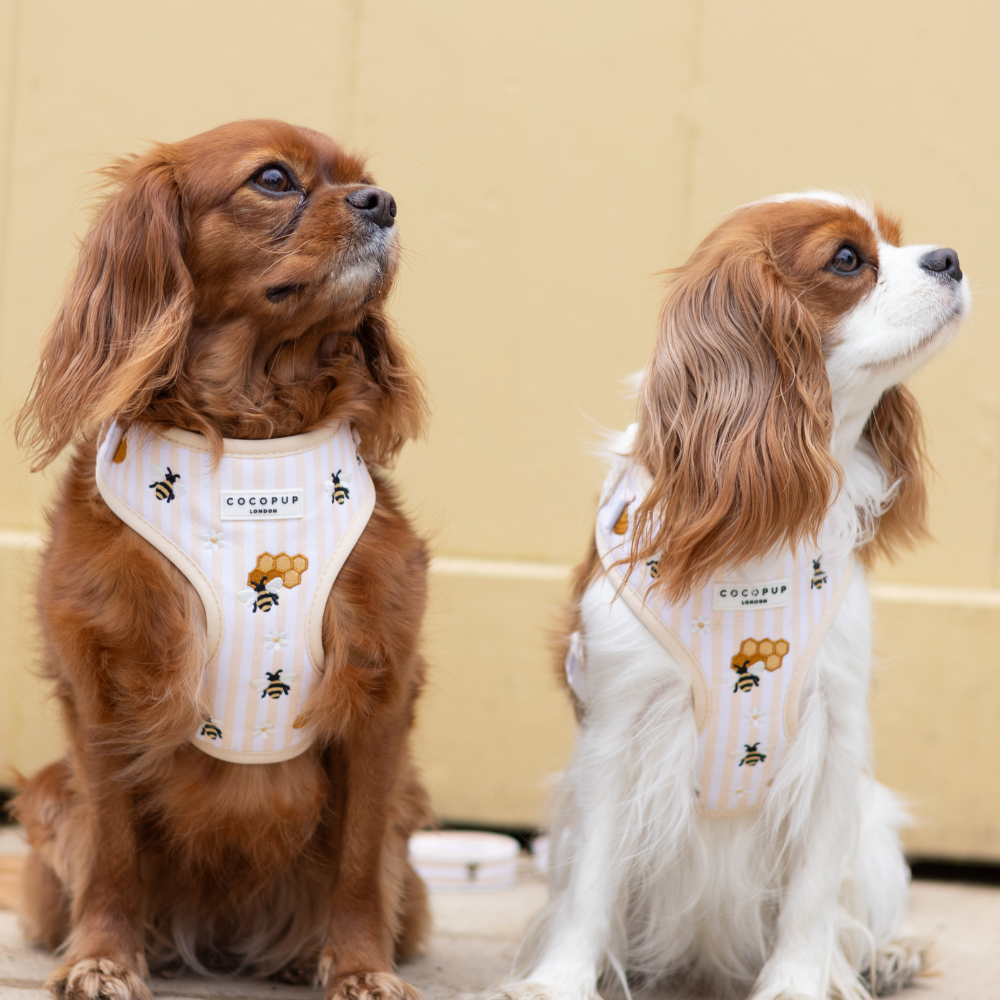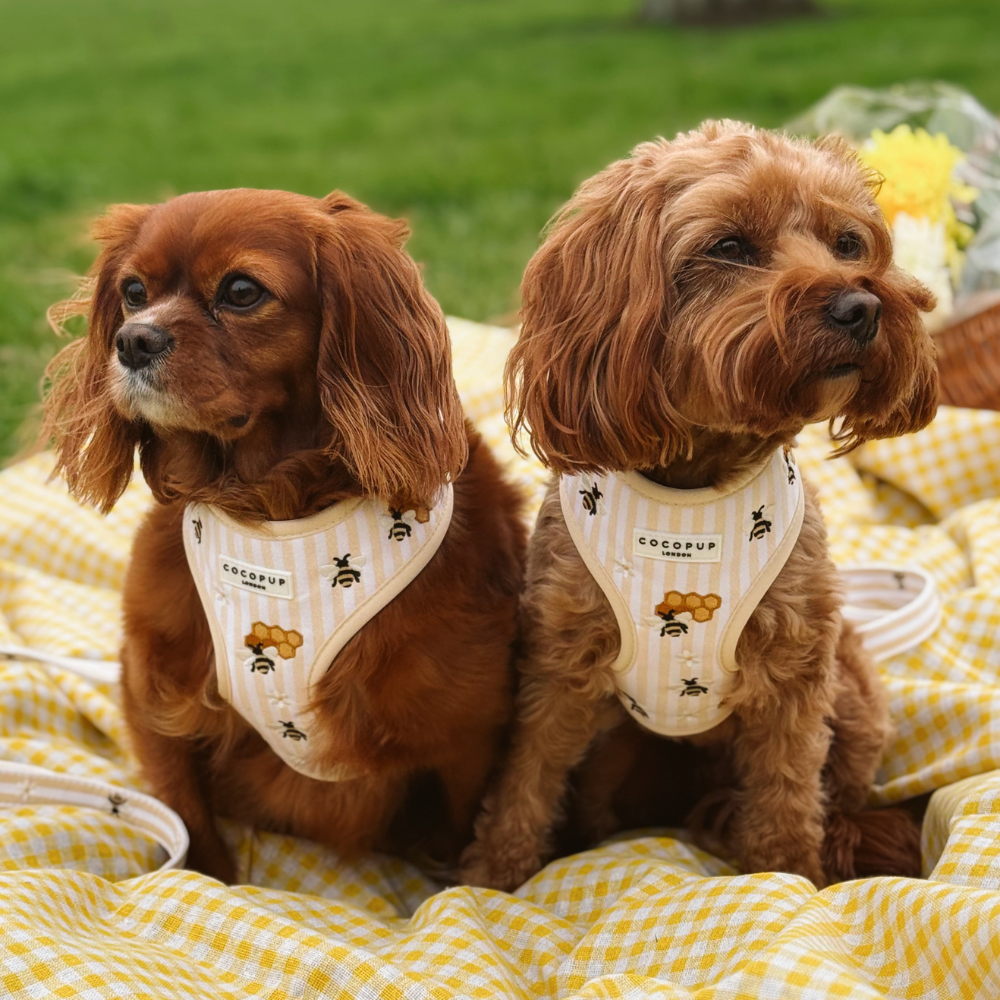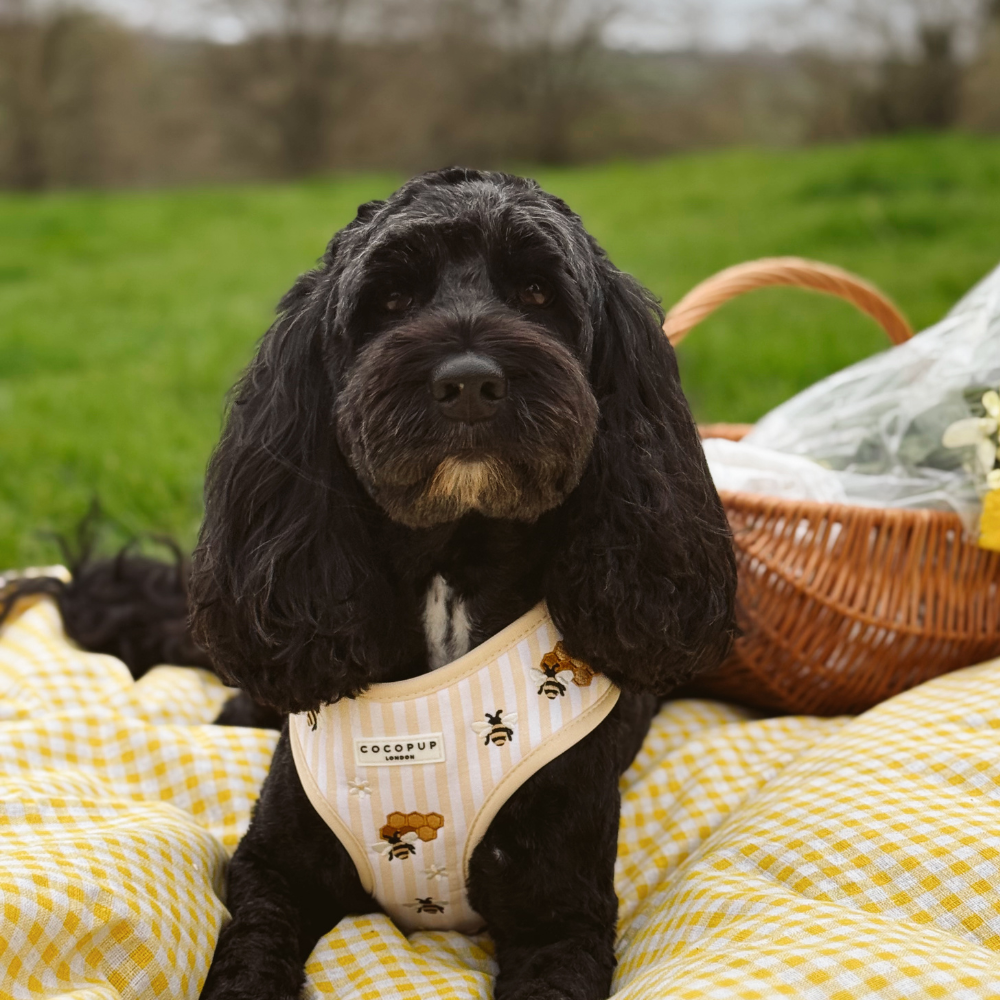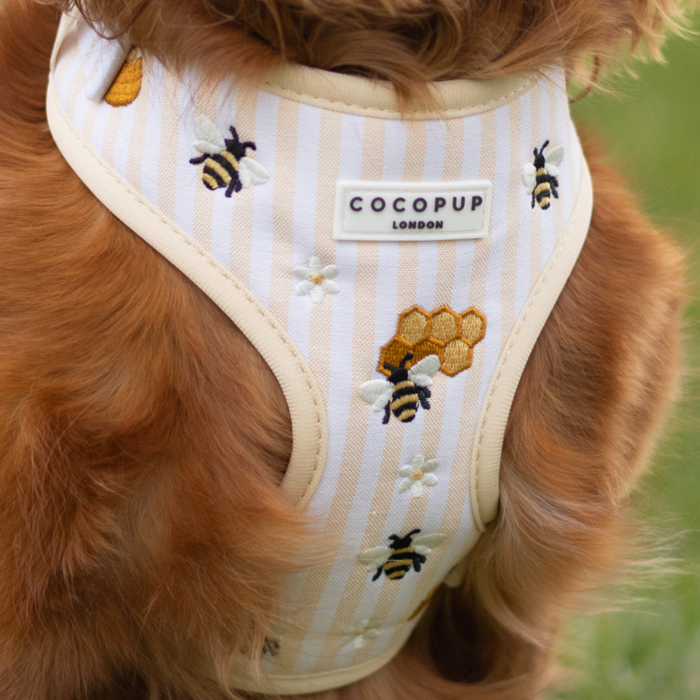 Brighten up your pup's countryside adventures with our Honey Meadow Dog Collar, perfect for those spring/summer golden hour country walks. Featuring bright butter yellow and white stripes paired with delightful embroidered details - honey pots, buzzing bees, and wildflower. It's utterly adorable and perfect for spring!