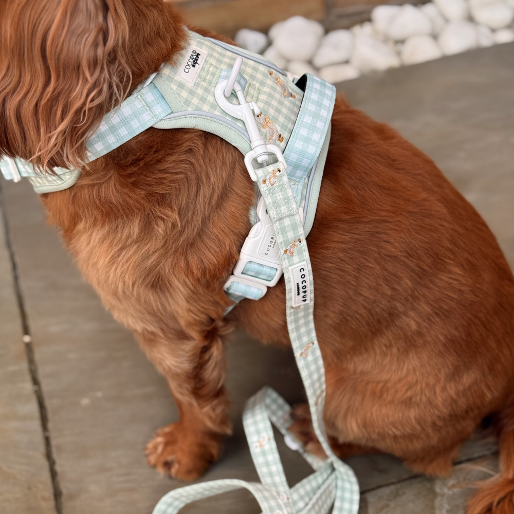 This springtime essential brings a splash of countryside charm to every adventure! Featuring a cheerful green and white gingham with sweetly embroidered geese. Perfect for pups who deserve something special, it transforms routine walks into heartwarming moments that capture attention and affection.