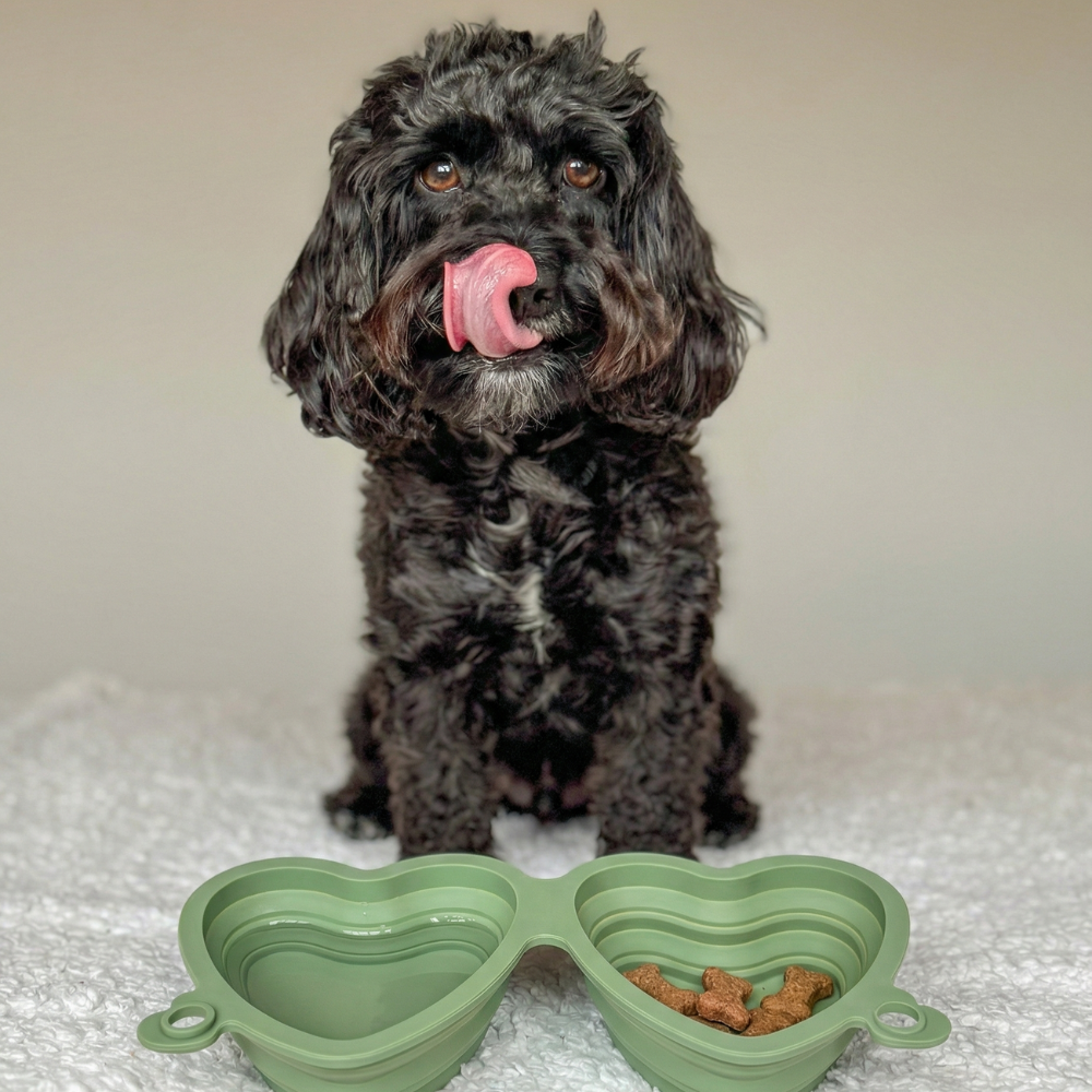 Introducing our Collapsible Heart-Shaped Dog Bowl in Black, the perfect blend of style, convenience, and functionality for pet owners on the go! This adorable bowl is designed with a unique heart shape, adding a touch of love to your pet's mealtime while ensuring practicality and ease of use.