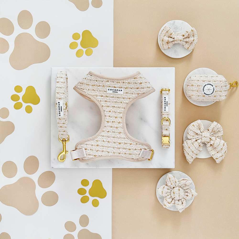 This dog walk essential is anything but basic. Our Vanilla Textured Tweed bundle adds a chic touch to your pup's daily walks with its fashionable cream colour and stylish tweed fabric. And with an adjustable neck harness, lead, and collar, your furry friend will be both secure and oh-so-stylish. Woof!