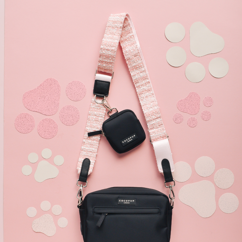 Take your dog on a stroll in style with our Dog Walking Bag Bundle! Our bag has plenty of room for all your walking essentials and features a cute and girly pink textured tweed strap. Keep things light and playful while you walk with your furry friend.